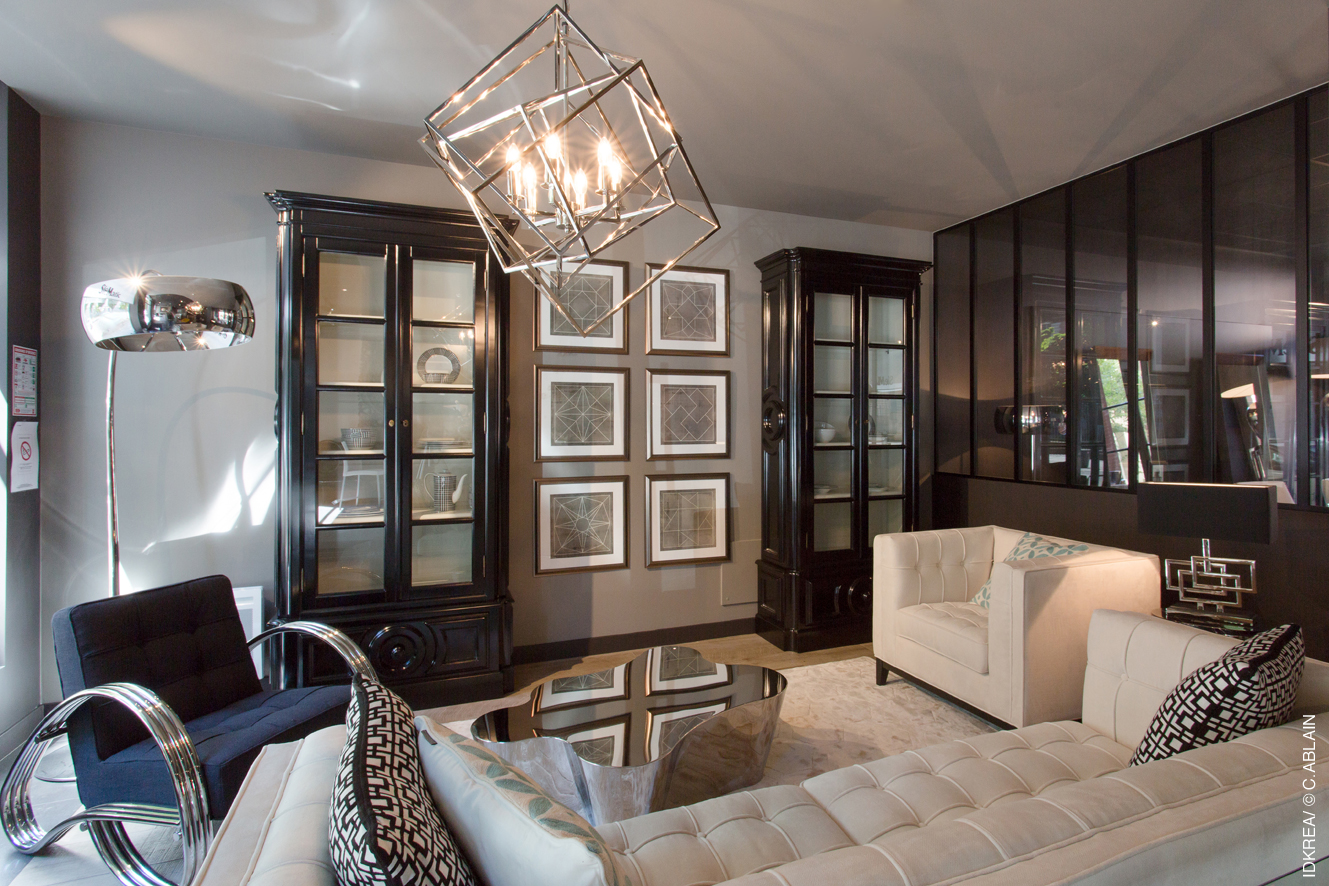 Désormais, on trouve en vitrine un nouvel espace salon décliné dans un style éclectique, chic et intemporel. Une sélection IDKREA faite à partir des coups de coeur de la saison, autour desquels sont choisies les nouveautés dans un soucis d’harmonie. La nouvelle collection est ainsi déclinée dans un style chic et intemporel mettant en vedette les matières et coloris naturels : bois, métal, noir, blanc ainsi que le gris et toutes ses nuances bleutées.