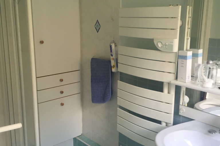 Pour renforcer un esprit marocain, la douche a été conçue pour ne recevoir aucune porte et/ou paroi vitrée. Enfin, elle est équipée d’une discrète et magnifique robinetterie de style, en bronze, surmontée d’une douchette : petite touche de confort contemporain.